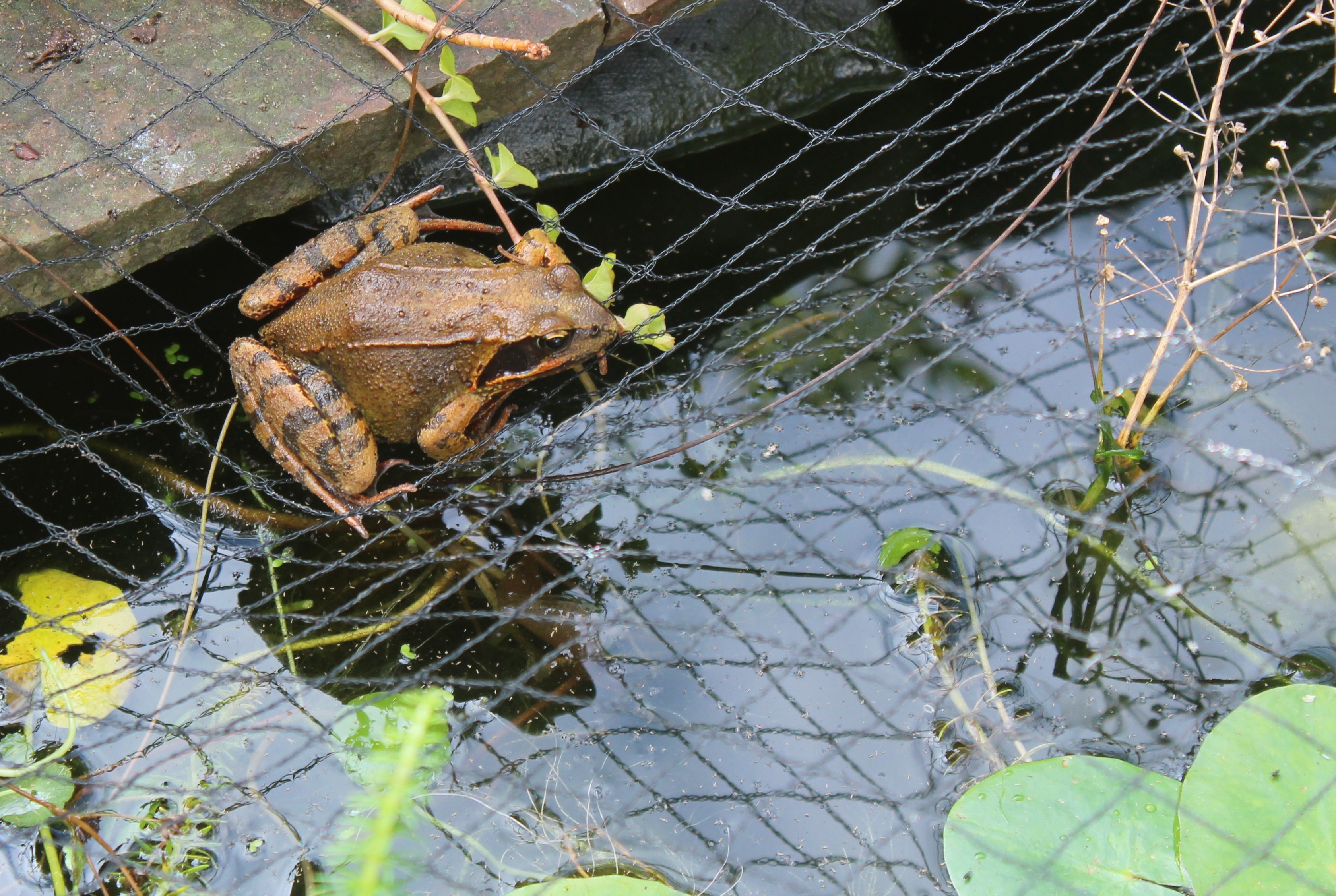 van onze vijver naar zijn nest dat waarschijnlijk honderd