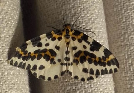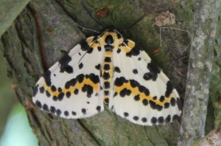 | Bonte bessenvlinder of Harlekijn / Magpie moth (Abraxas grossulariata) | Smaragdgroene zomervlinder / Small grass emerald (Chlorissa viridata) | ||||||