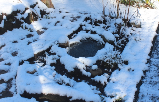 Winter, besneeuwd moerastuintje |