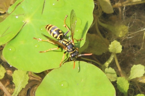 Franse veldwespen drinken uit de vijver |