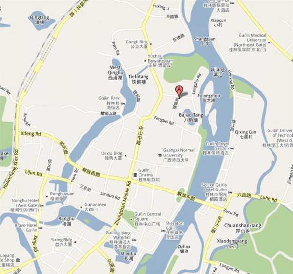 Guilin is gelegen aan de rivier de Li. Guilin en omgeving