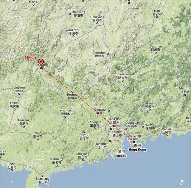 Aan het begin van de avond vlogen we naar Guilin, een naar