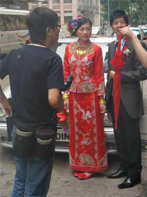 verrast door een bruidspaar waarvan de bruid traditioneel