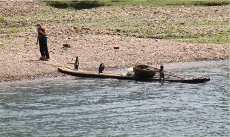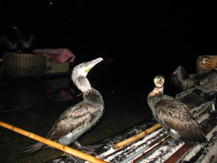 wordt een touwtje gebonden zodat de gevangen vis niet kan worden doorgeslikt. Als de visser ziet dat de vogel een vis gevangen