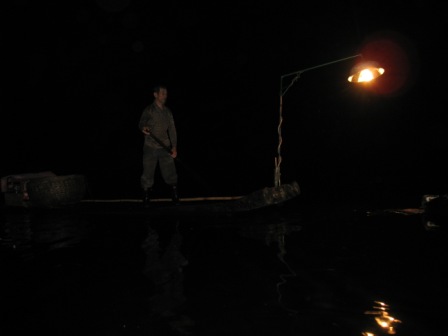 Er wordt 's avonds in het donker gevist omdat de dieren overdag voldoende honger moeten krijgen. Om de keel van de aalscholver