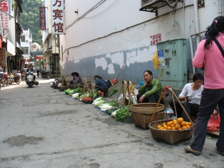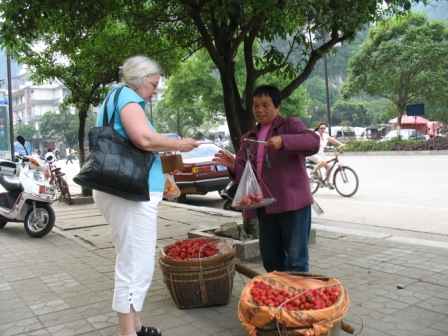 In Yangshuo werd de boot afgemeerd en liepen we door