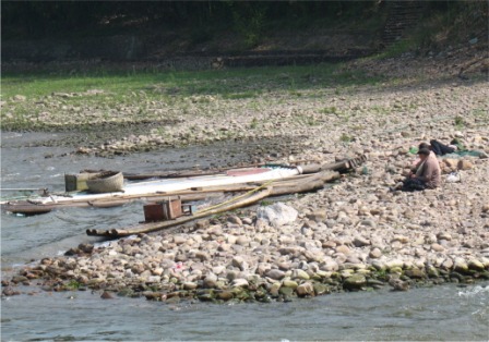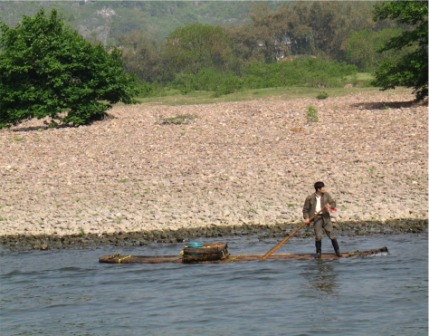 om 8.30 uur met de bus naar de Li rivier gebracht voor een boottocht