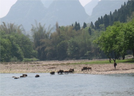 van ca 4 uur van Guilin naar Yangshuo. Deze omgeving staat