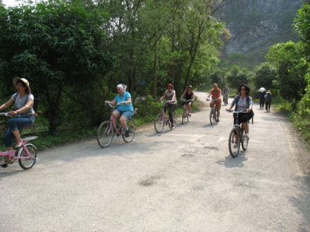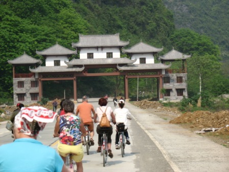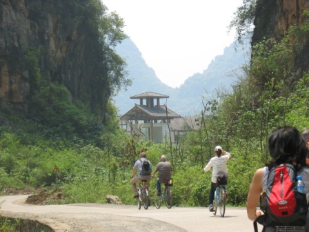 We fietsten door dorpjes, langs rijstvelden tussen de