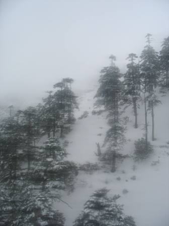Na het ontbijt reden we met de bus in de regen naar de Jade Sneeuwdraak bergketen