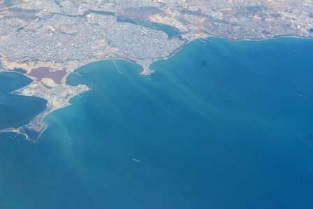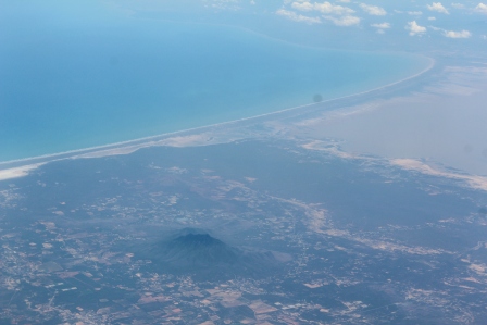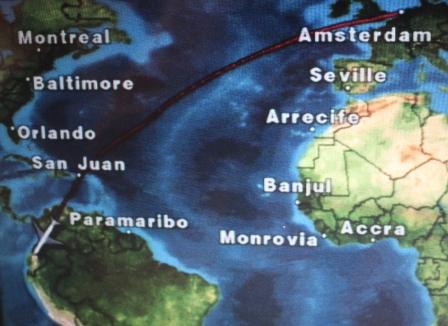 We vertrokken van een bewolkt Schiphol, dus weinig van bovenaf te zien. Pas boven de Maagdeneilanden aan de overkant van de oceaan was er, tussen de wolken door wat land in zicht