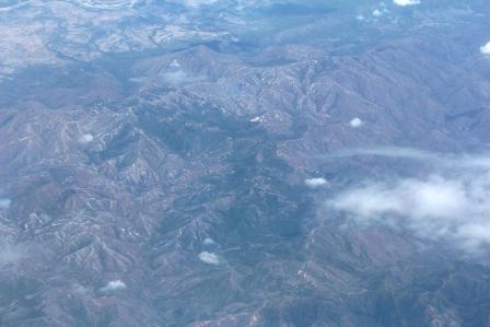 we vliegen nu boven Bolivia met zicht op het Andesgebergte |
