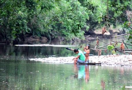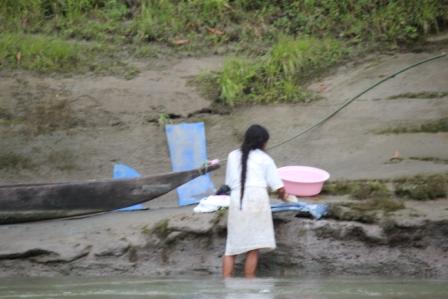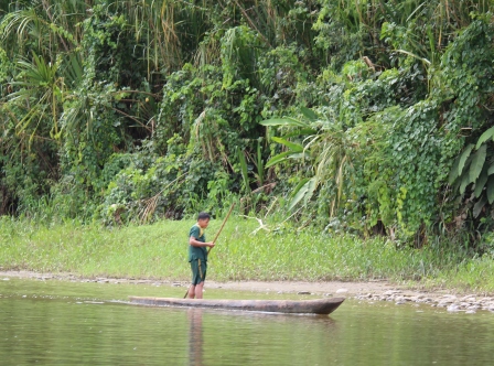 Meestal zie je alleen natuur langs de rivier maar af en toe zijn