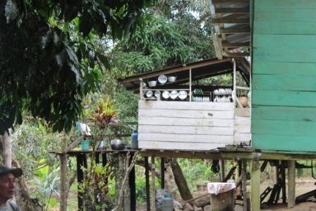 op palen gebouwd zodat er geen slangen binnen konden komen |