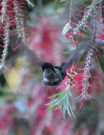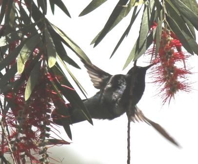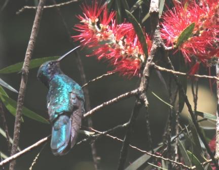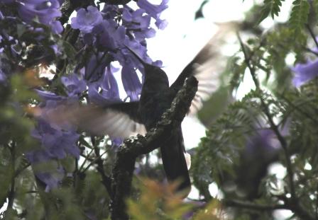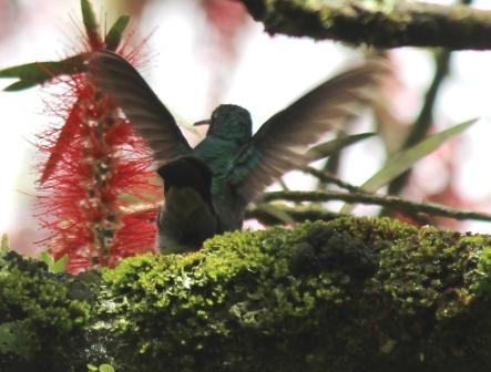 enkele van de vele kolibries die we zagen in het centrale park van Baņos, de Groene violetoorkolibrie |