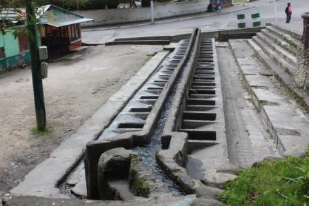 bezoeken de Ecuadoranen Baņos voor de warmwaterbaden, een bezoek aan