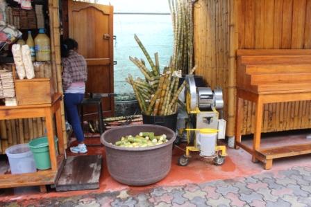de standjes voor verkoop van suikerriet, nu bijna allemaal leeg | verwerking van suikerriet | kinderspel met suikerriet |