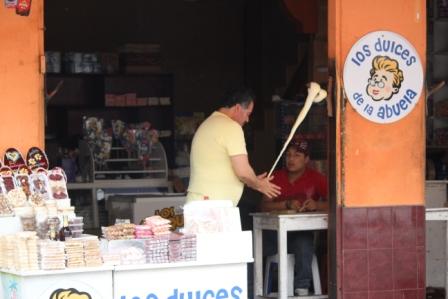 maken van toffees (melcochas), de plaatselijke lekkernij van zoet suikerriet | nuttige handwerken | een indiaanse verkoopster veegt haar straatje |