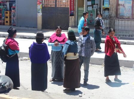 dames van de Cañaris-indianenstam bij de startplaats van de mountain-bike