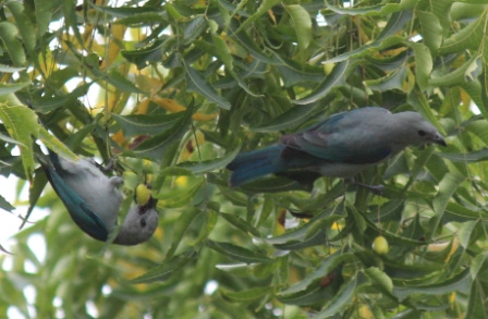 twee bischopstangaren eten zaden uit de boom | de kalkoengier schud z'n veren | een tropische koningstiran |