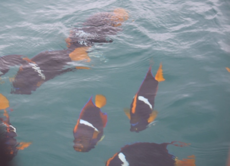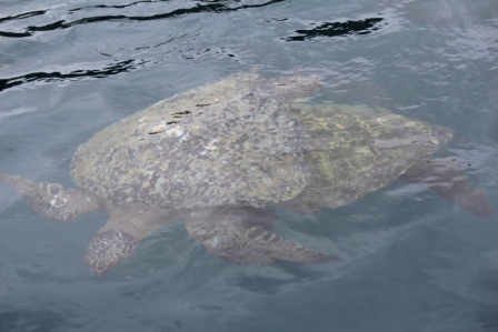 bij het eiland zien we parende waterschildpadden | en de Engel- of Keizersvis / King Angelfish (Holacanthus passer) |