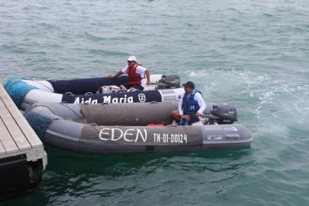 Hier stond de bemanning van de Yate Eden klaar om ons in te