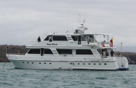 | we naderen Galapagos vanuit het noorden, het eerste eiland Seymor North | en dan het tweede, Mosquera Island | en zien dan de kust van onze bestemming, het eiland Baltra |