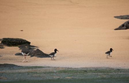 | de Amerikaanse bonte scholekster / American Oystercatcher (Haematopus palliatus), rechts met jongen | de Lava Reiger | |