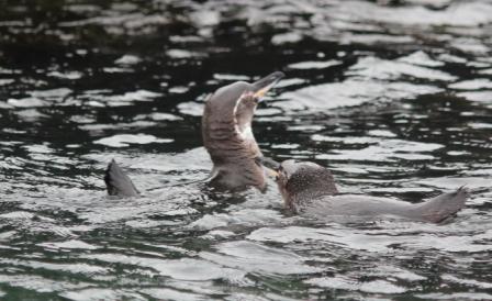 eten kleine scholen vis zoals sardienen en soms schaaldieren.