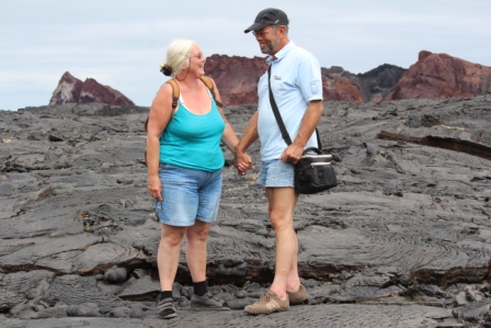 Ons bezoek aan Sullivan Bay op Santiago eiland was een bijzondere ervaring. Lopen over een lavavlakte met veel scheuren, ontstaan tijdens de afkoeling van de lavastroom. Het lijkt of de lava net afgekoeld is