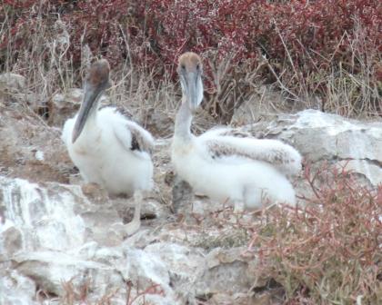 | Bruine Pelikaan, rechts de jonge pelikaantjes | |
