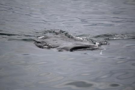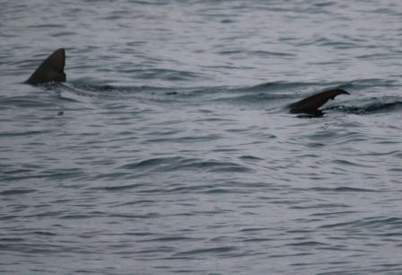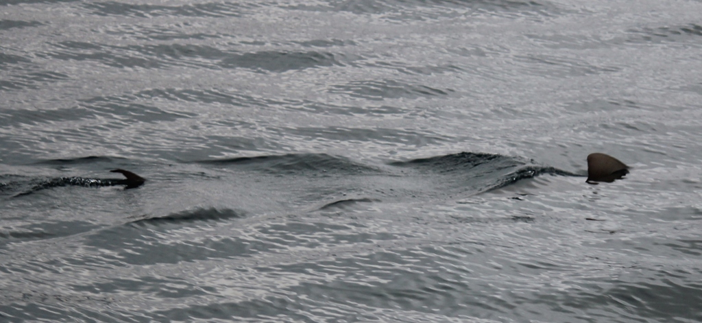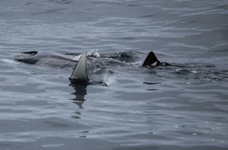 staartstuk, spitse flippers, grijze bovendelen en een witte buik. Het