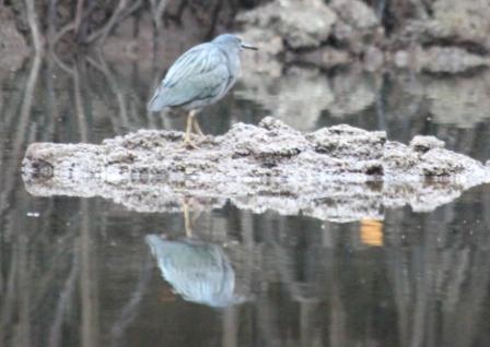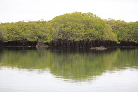 het eind van de baai, omringd door rode mangroven. Na enige tijd
