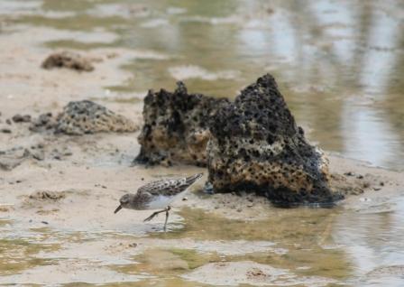 | roze flamingo in de knoop | strandlopertje | blauwe reiger op een idyllisch plekje |