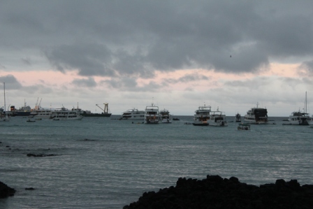 avonds gingen we voor anker in de baai voor de stad Puerto Ayora |