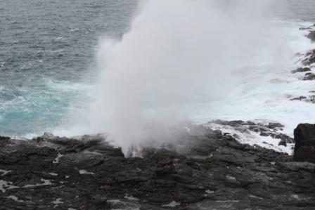 hoog) in de rotsen, waar het zeewater door de golven met grote kracht