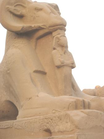 Sfinxen van Nectanebo I, voor de hoofdingang van de tempel van Amon (1380 v. Chr.) met het lichaam van een leeuw met de ramskop van Amon |