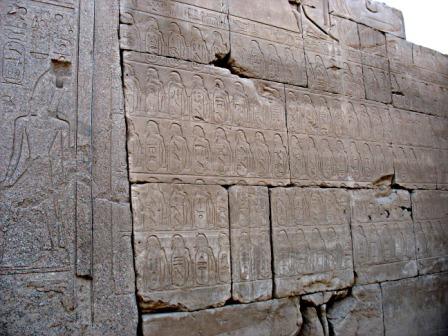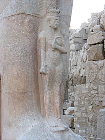| Rams-sfinx in de Amon tempel met koning Nectanebo I | Ramses III met zijn vrouw op de voorgrond | de vrouw van Ramses III |