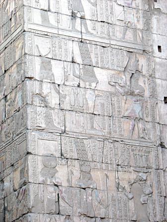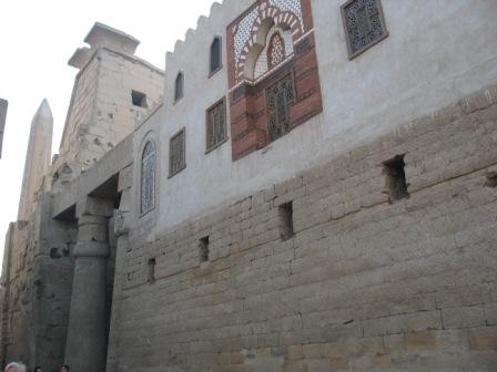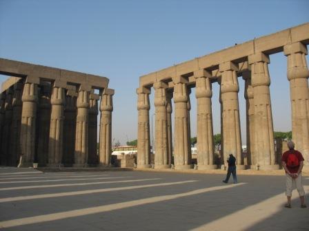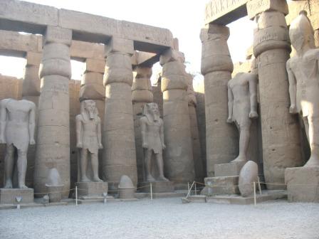 | Eerste pyloon van de tempel van Luxor, opgedragen aan de triade van Thebe: Amon, Moet en Chonsoe | en weer terug naar de boot |