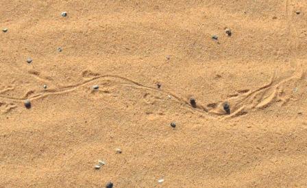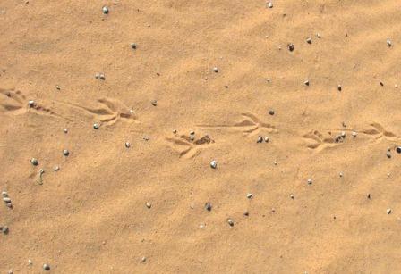 | sporen van een hagedis in het woestijnzand | slang | vogel |