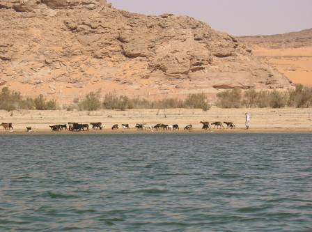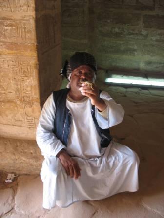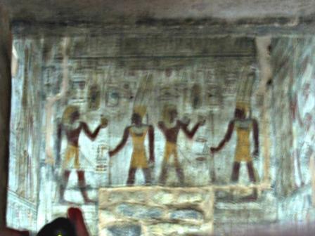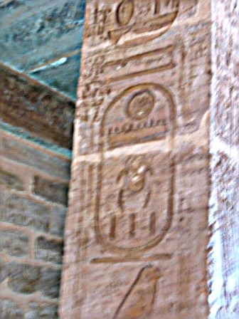| boot met gewapende escorte naar het tempel-eiland | ingang van de tempel van Amada | Stèle van Amenhotep II over de bouw van de tempel door Thoetmosis III - de kleuren zijn goed bewaard gebleven |