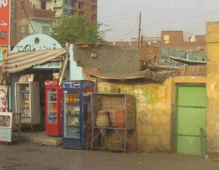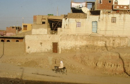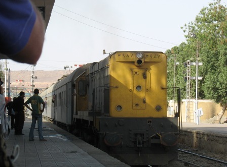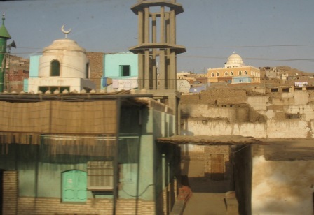 | aankomst van de trein in Aswan | dorpje met blauwe deuren en vensters |