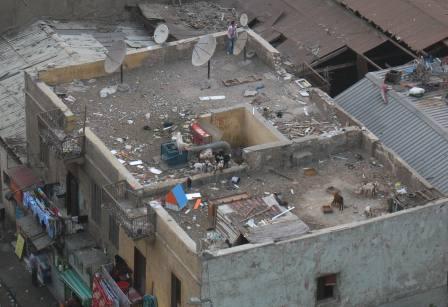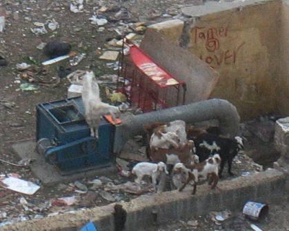 | wachtende ezeltjes | dakterras direct onder ons hotelraam in het centrum, thuishonk van een kudde geiten | |