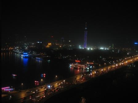 | nachtelijk uitzicht over de Nijl vanuit ons hotel | ||