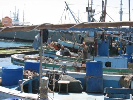 Veel bedrijvigheid in de vissershaven van Dahar-Hughada