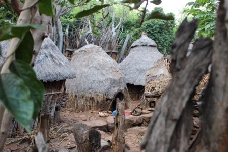 van de Omo vallei. De dorpjes bestaan uit een tiental hutjes van