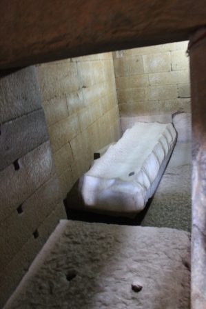 met holle sarcofaag waar mogelijk nog een lichaam in zit |