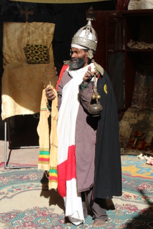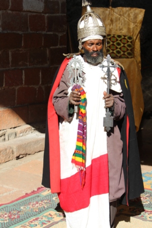 Onze Ethiopische gids Happyness weet erg veel van de kerken,