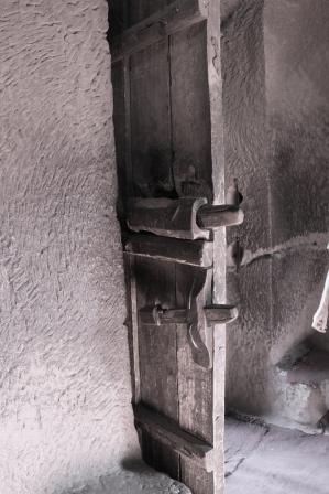 de gracht rond de rotskerk | Bete Gabriel-Rufael | het altaarstuk | houten deur met dubbele grendels |