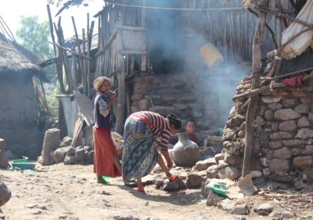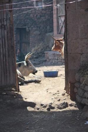 het oude Lalibela | doorkijkje met koeienkoppen | kookplaats voor het huis |